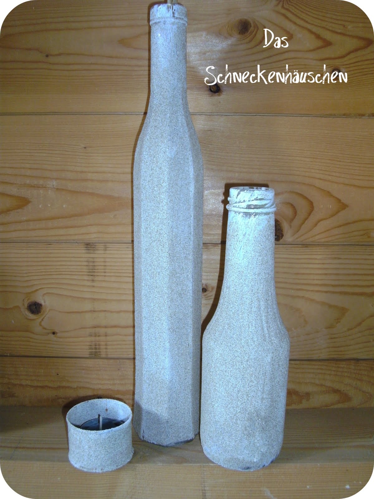 Ich habe die Flaschen und auch die kleine Dose mit weißer Acrylfarbe angestrichen
